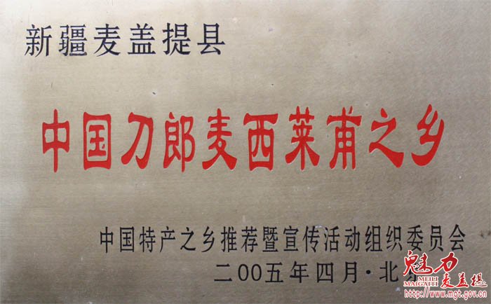 2005年4月被中国特产之乡推荐暨宣传活动组委会命名为“中国麦西莱甫之乡