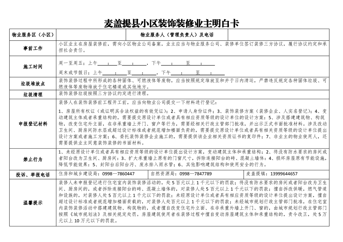 附件:1.住宅装修须知(示范文本)