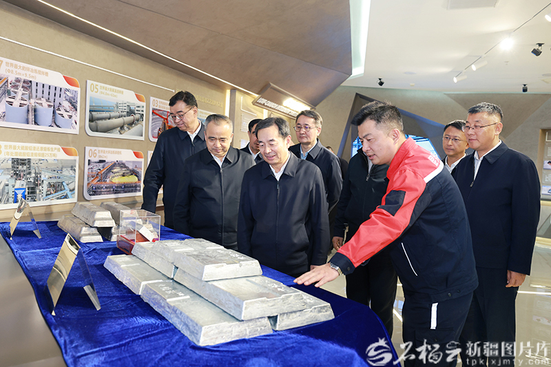 3月25日,自治区党委书记陈小江、自治区主席艾尔肯·吐尼亚孜在位于洛浦县的和田昆冈经济技术开发区,实地了解新疆昆仑锌业有限责任公司生产运营情况。天山网-新疆日报记者 崔志坚 摄