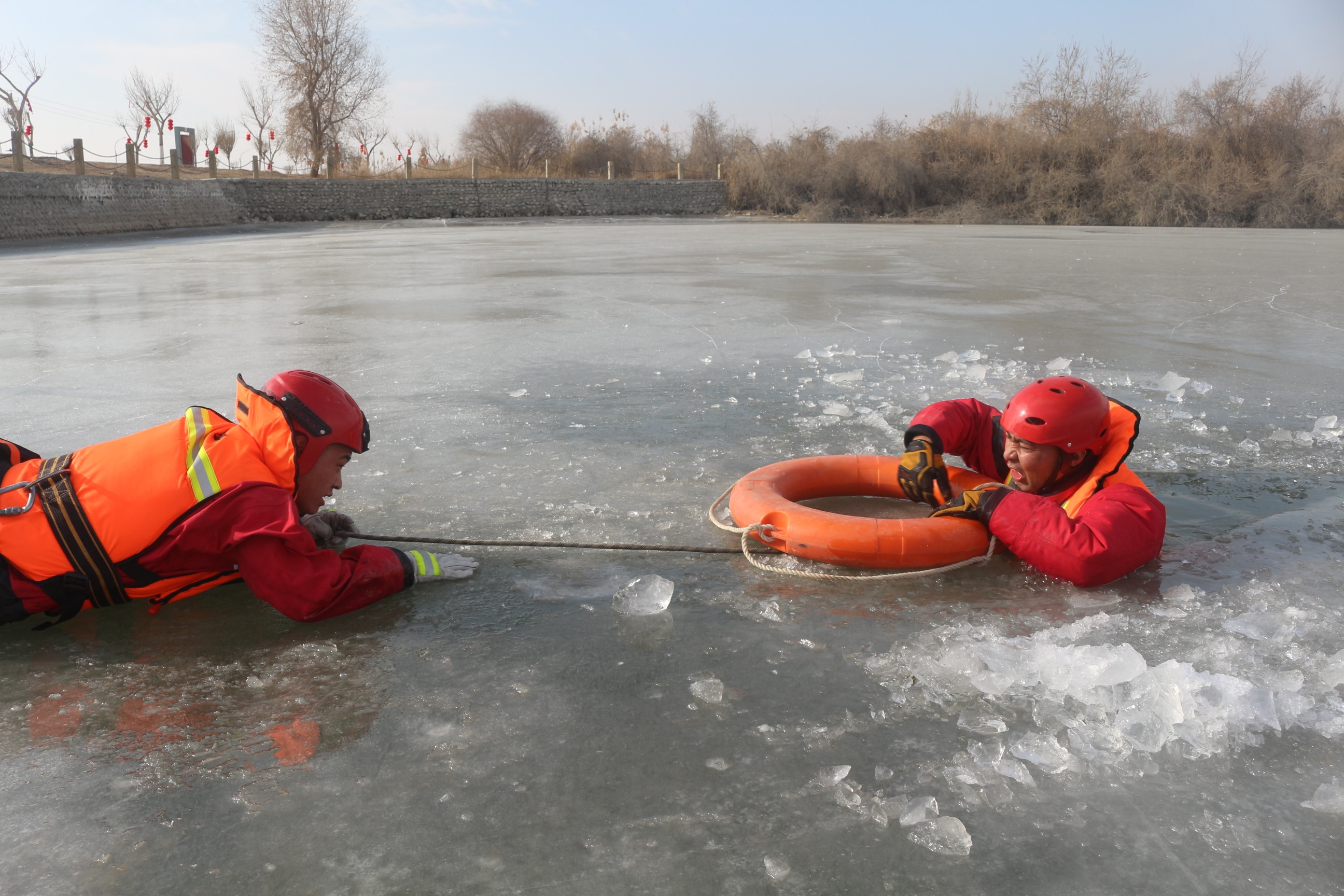 为进一步强化消防救援人员处置冰面救援业务技能水平,近日,麦盖提县消防救援大队结合辖区自然条件和冰雪灾害抢救规律特点,主动作为,迅速行动,组织开展了低温冰雪冰冻灾害专业实战演练。