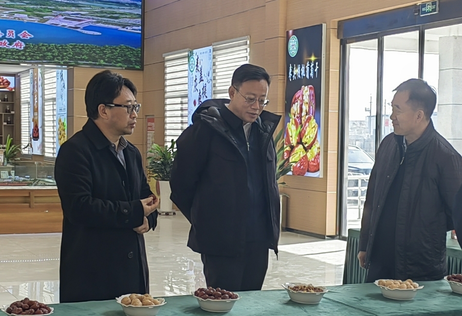 在麦盖提县红枣产业园,李旭一行听取了麦盖提县红枣收购、加工、仓储、期货交割全产业链发展情况。他强调,要坚决把产业振兴作为乡村振兴的重中之重,坚定不移走特色农业发展道路,进一步延伸、补齐、做强红枣产业链,加快把特色资源优势转化为产品优势。从种子、种植、管理抓起,大力推广现代农业发展模式,通过订单生产、入股分红等多种利益联结机制,持续提升麦盖提红枣品质,提高农民经营收入,合理分享全产业链增值收益。