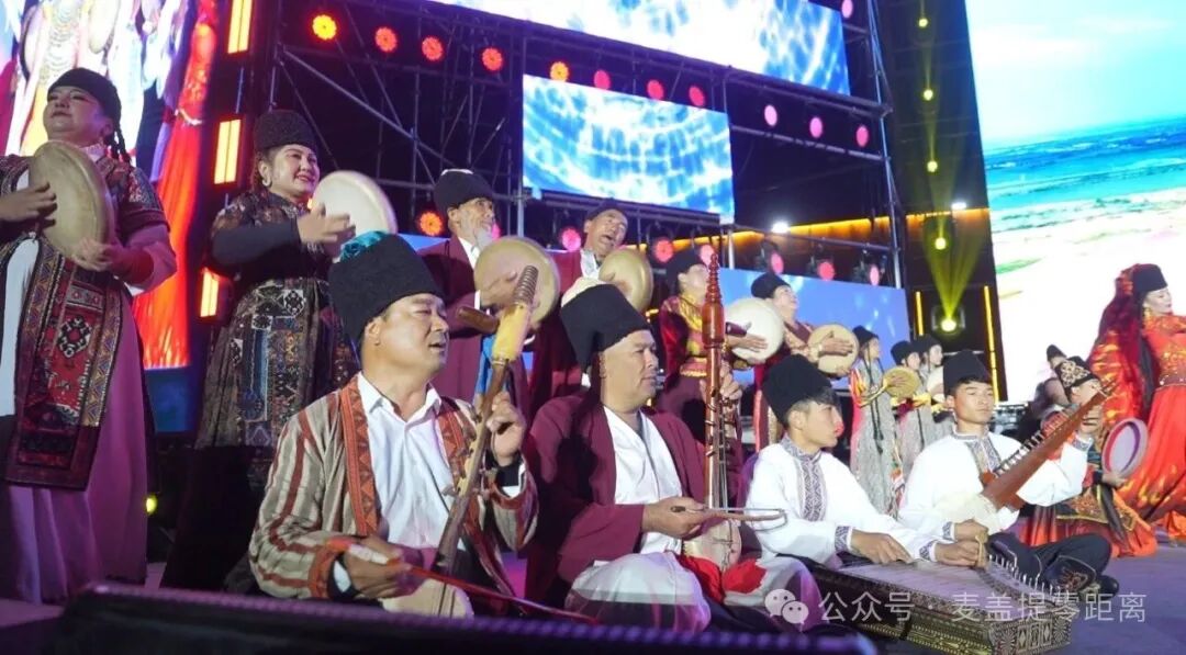 晚会现场灯光璀璨,人头攒动,热闹非凡。随着疏附县歌舞团带来的歌伴舞《打起手鼓唱起歌》奏响旋律,晚会正式拉开帷幕。随后,集体舞《哎 巴郎子》、歌伴舞《我把新疆唱给你听》、《T台秀》与集体舞《中华民族在一起》轮番上演,生动展现出各族群众如今的美好生活与欢乐氛围。而歌伴舞《叶河刀郎》,以及麦盖提民间艺人带来的原汁原味非物质文化遗产《刀郎木卡姆》弹唱,更为这场晚会增添了一抹浓郁醇厚的文化韵味。