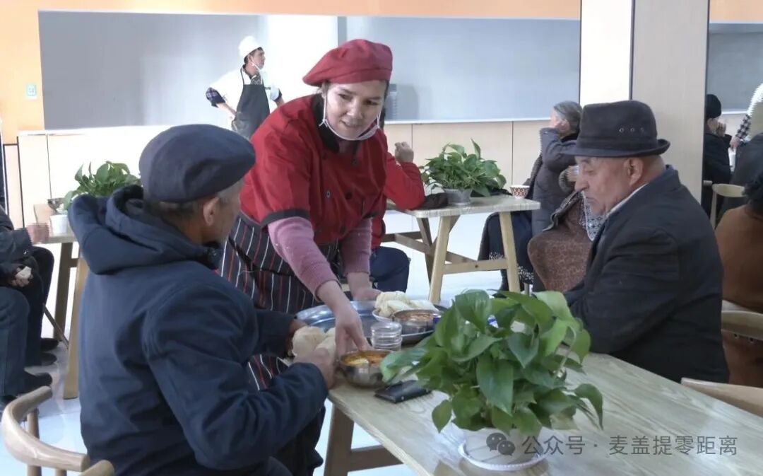 麦盖提县麦盖提镇新时代社区居民马木提·萨吾提说道:“社区爱心食堂天天都开放,啥时候来都能吃上热乎饭。想吃筋道的拉面、喷香的米饭都能满足,我们这些老人天天来这,吃得舒心,心里更是美滋滋的。”