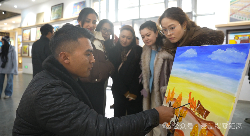 在麦盖提县“刀郎画乡”景区,采风团一行沉浸式体验刀郎木卡姆,共跳刀郎麦西热甫,还不时驻足观赏刀郎农民画,与当地农民画家亲切交流,深入了解刀郎农民画的创作历程与文化内涵。大家纷纷拿起相机、手机,定格一幅幅充满乡土气息与艺术感染力的画面,进一步领略非物质文化遗产与乡村旅游融合发展的独特魅力。同时,采风团一行还走进百万亩防风固沙生态林及N39°沙漠旅游景区,近距离体悟麦盖提县将沙漠资源和治沙成果转化为发展优势,蹚出一条生态保护与经济发展协同并进新路子的先进做法。