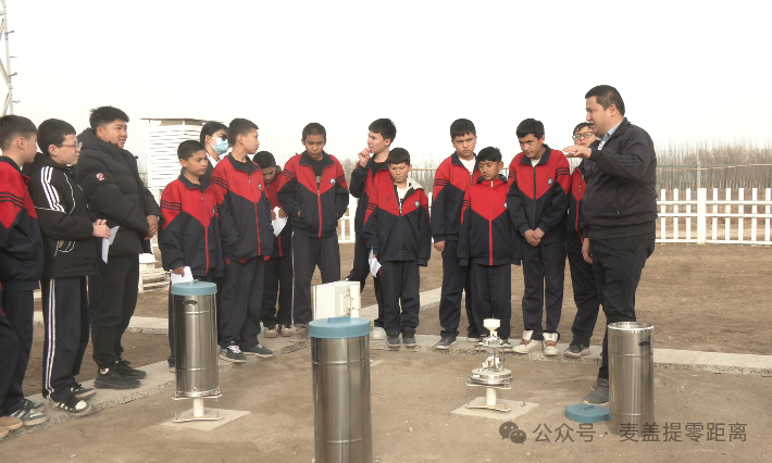 线上直播精彩纷呈,线下开放日同样热闹有序、干货满满。麦盖提县第一中学的学生代表们走进县气象局,依次参观气象科普展厅和人影火箭架等专业装备,对人工影响天气作业流程、气象观测核心设备有了初步且全面的认知。随后,学生们还在工作人员带领下,前往麦盖提县昂格特勒克乡气象观测站,现场参观风向风速传感器、百叶箱、雨量筒、降水现象仪、土壤水分观测设备等,直观了解温度、湿度、气压、风向、降水等气象要素如何被精准捕捉。
