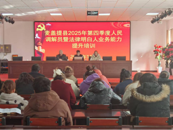 为深入践行新时代“枫桥经验”,提升基层人民调解员和“法律明白人”专业素养与实战能力,发挥人民调解维护社会稳定“第一道防线”作用,近日,麦盖提县司法局举办2025年第四季度人民调解员暨“法律明白人”业务能力提升培训,组织全县1800余名人民调解员和“法律明白人”分批次开展“面对面”集中充电,实现能力素质精准赋能。