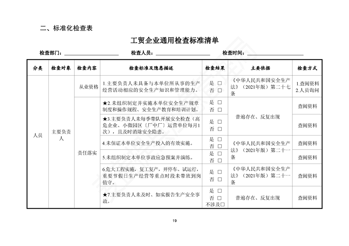 当前位置: 首页 > 政务动态 > 专题专栏 > 涉企行政检查公示专栏 > 检查标准